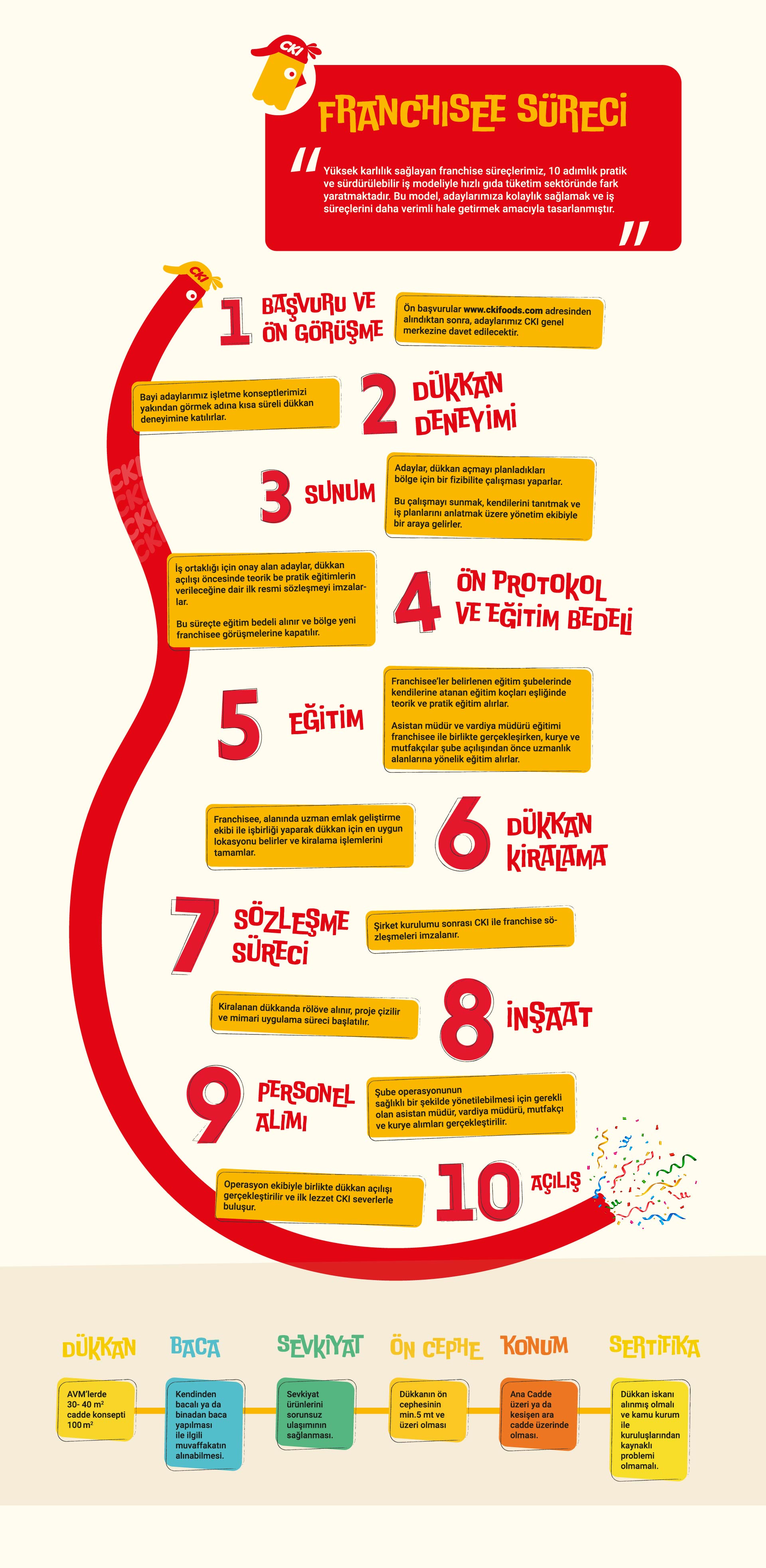 Frenchize (franchise) bir restoran açmak için genellikle marka ile bir franchise anlaşması imzalanır. Şirketin belirlediği sermaye, lokasyon, eğitim programlarına katılım ve marka standartlarına uyum şartları yerine getirilmelidir.